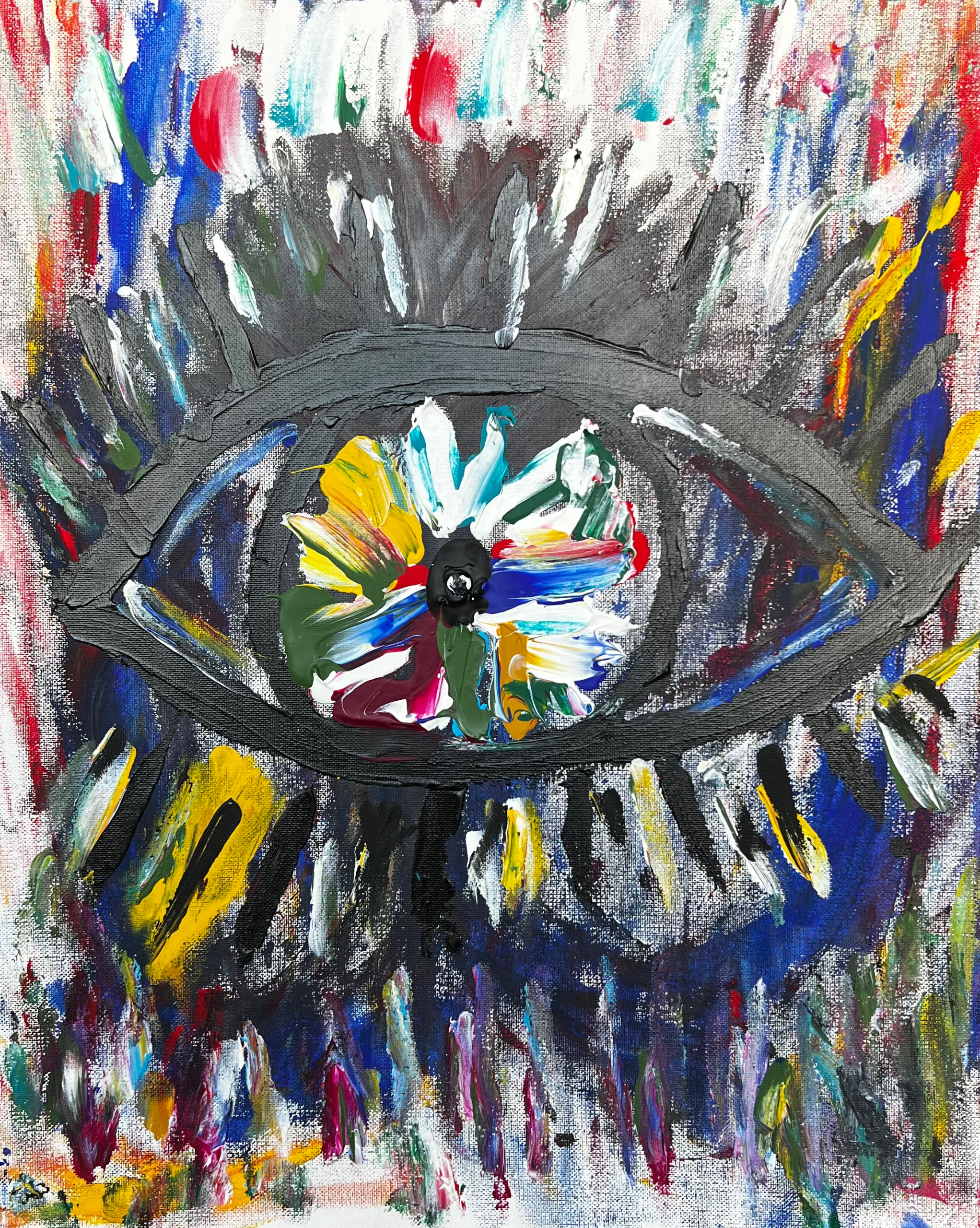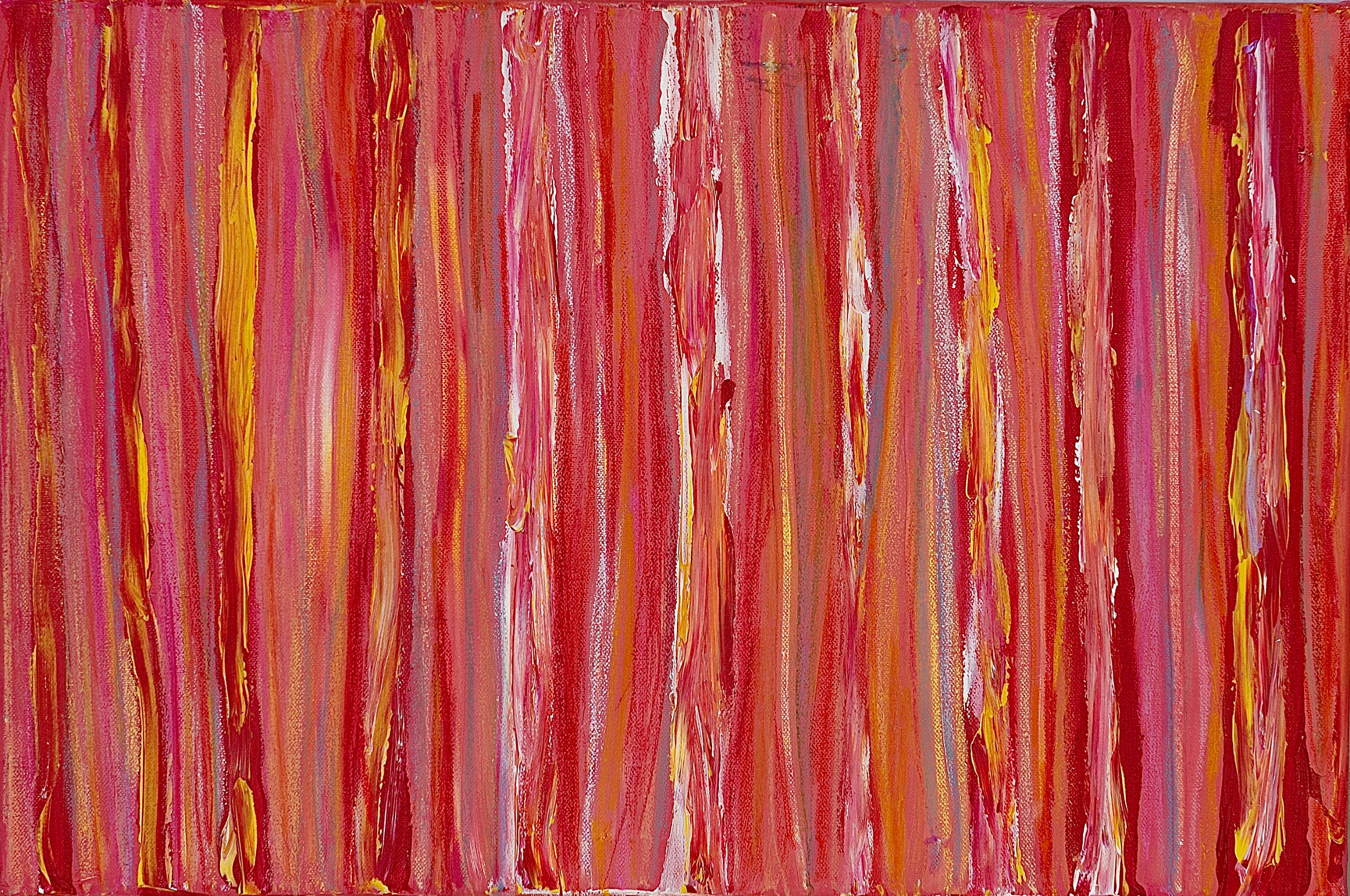 I’ve payed homage to Netflix and captured freedom with bold strokes of reds, pinks, and yellows. This piece asks: Are you merely viewing your life, or are you living it freely?